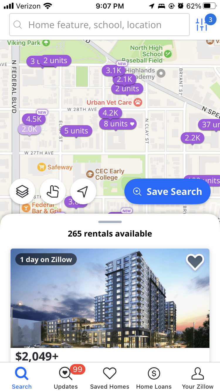 As I began to design the filters I made the mistake of initially creating my own design, rather than aligning with Zillow’s UI (left image). When I recognized my mistake, I pivoted and maintained consistency by utilizing Zillow’s pre-existing filtering system.